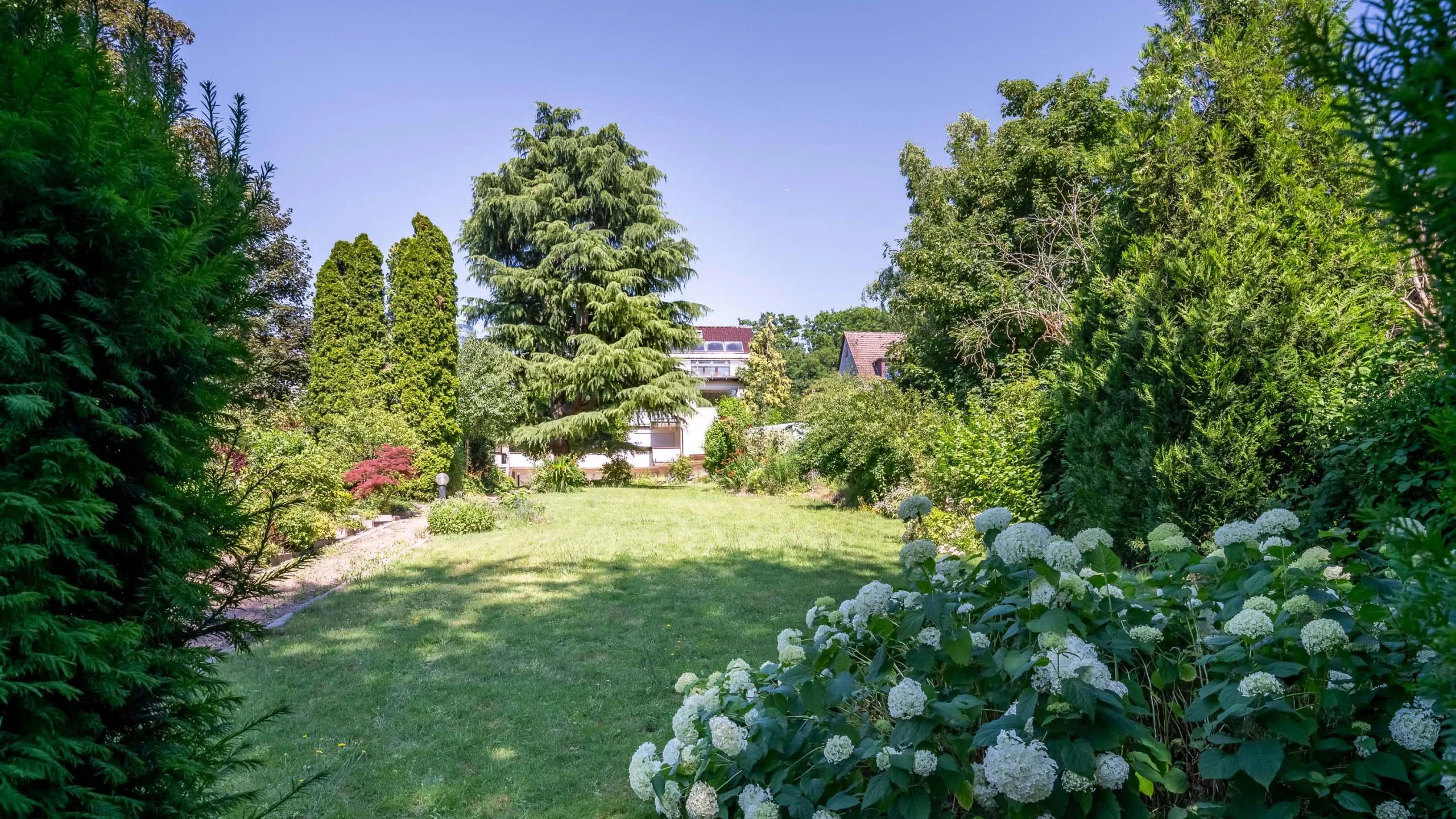 Garten / Vorgarten | eingewachsener Garten mit kleinem Teich, Rasenfläche, Stauden, Sträuchern und Bäumen |