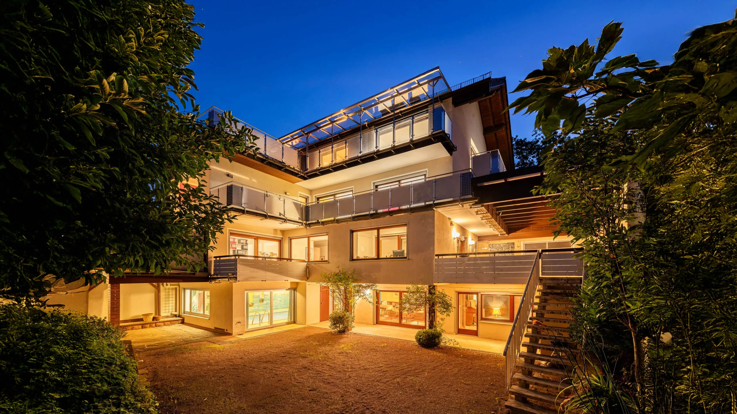 - insgesamt zwölf Zimmer (14 m² bis 74 m²; bis zu 7,25 m Höhe) und vier Bäder